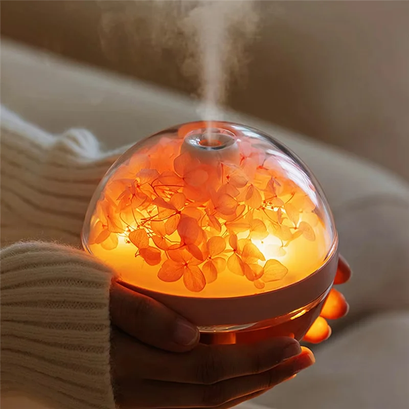 PRESERVED FLOWER INSIDE & WARM NIGHT LIGHT - This awesome humidifier comes with a preserved flower ball night light feature that creates a relaxing atmosphere while emitting a soothing mist. It offers maximum relaxation for you, and the night light can help improve your sleep quality.